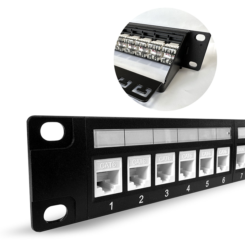 Blank Patch Panel: Et tomt patchpanel er et panel uden forudinstallerede porte eller stik. Det fungerer som en fleksibel løsning til tilpasning af forbindelsesbehovet for en bestemt netværksinstallation. Blanke patch -paneler giver mulighed for installation af keystone jacks eller andre modulære stik baseret på netværkets specifikke krav.